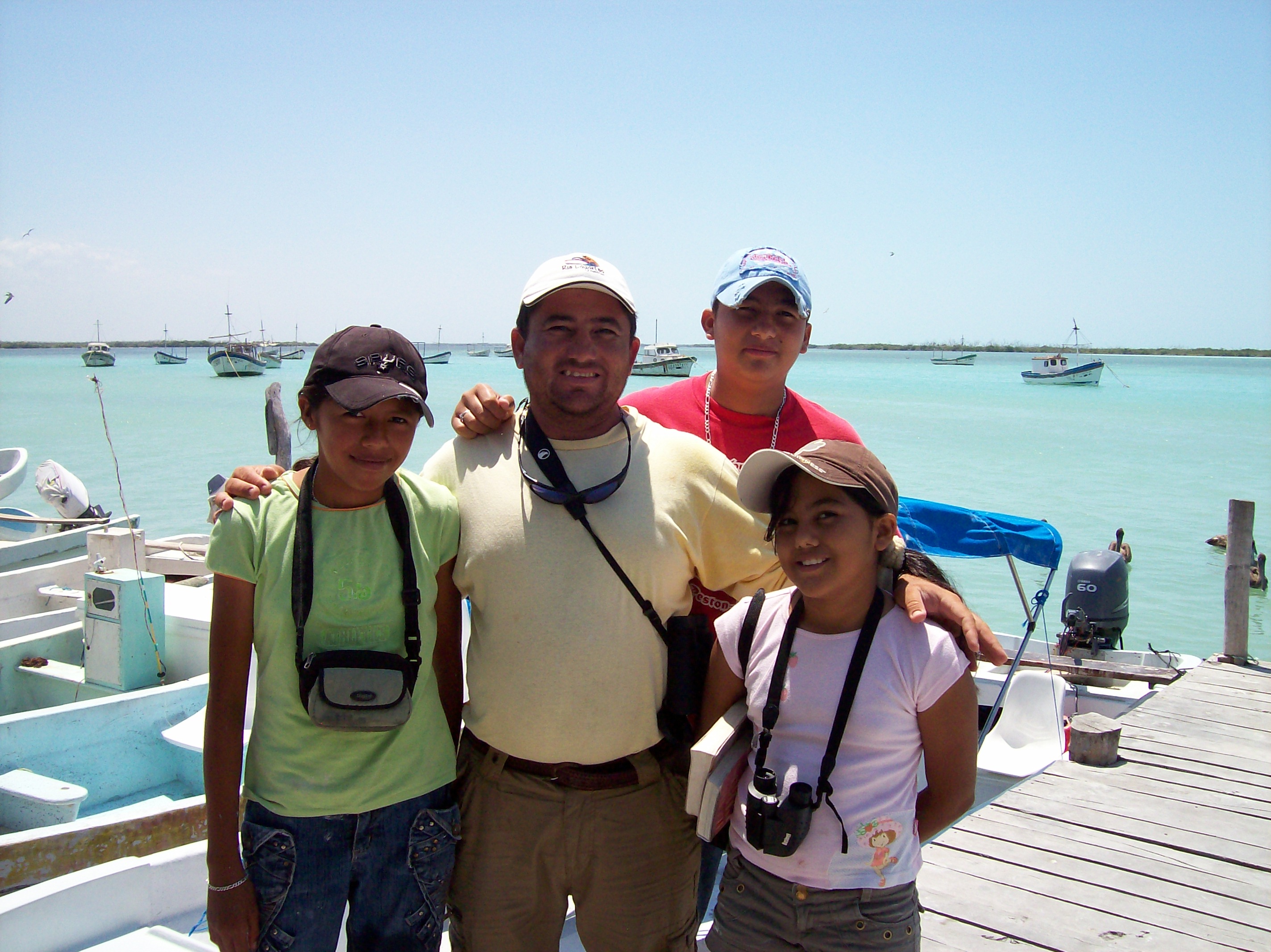 At lunchtime we took a break and had lunch at Diego’s family restaurant. (Yea! More chips and guacamole!) Then Diego’s son, Diego Jr., and his daughter, Andrea, and her friend joined us for a boat ride. We saw American flamingos, Roseate Spoonbills, and even a crocodile among other things. We stopped at the salt flats and played in the foamy bubbles and the mud. I just loved spending time with Diego and his family. They were so hospitable to us and at the end of our trip I didn’t want it to end.