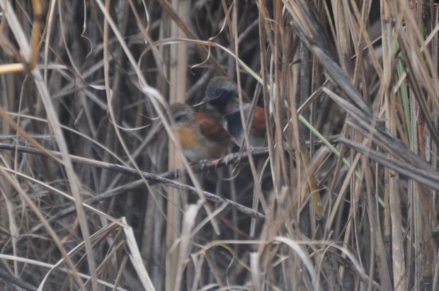 Seen on our trip in Panama but not with the ant swarm–this cute pair of White-bellied Antbirds–we saw the following day. It’s not a great shot at all, I know.