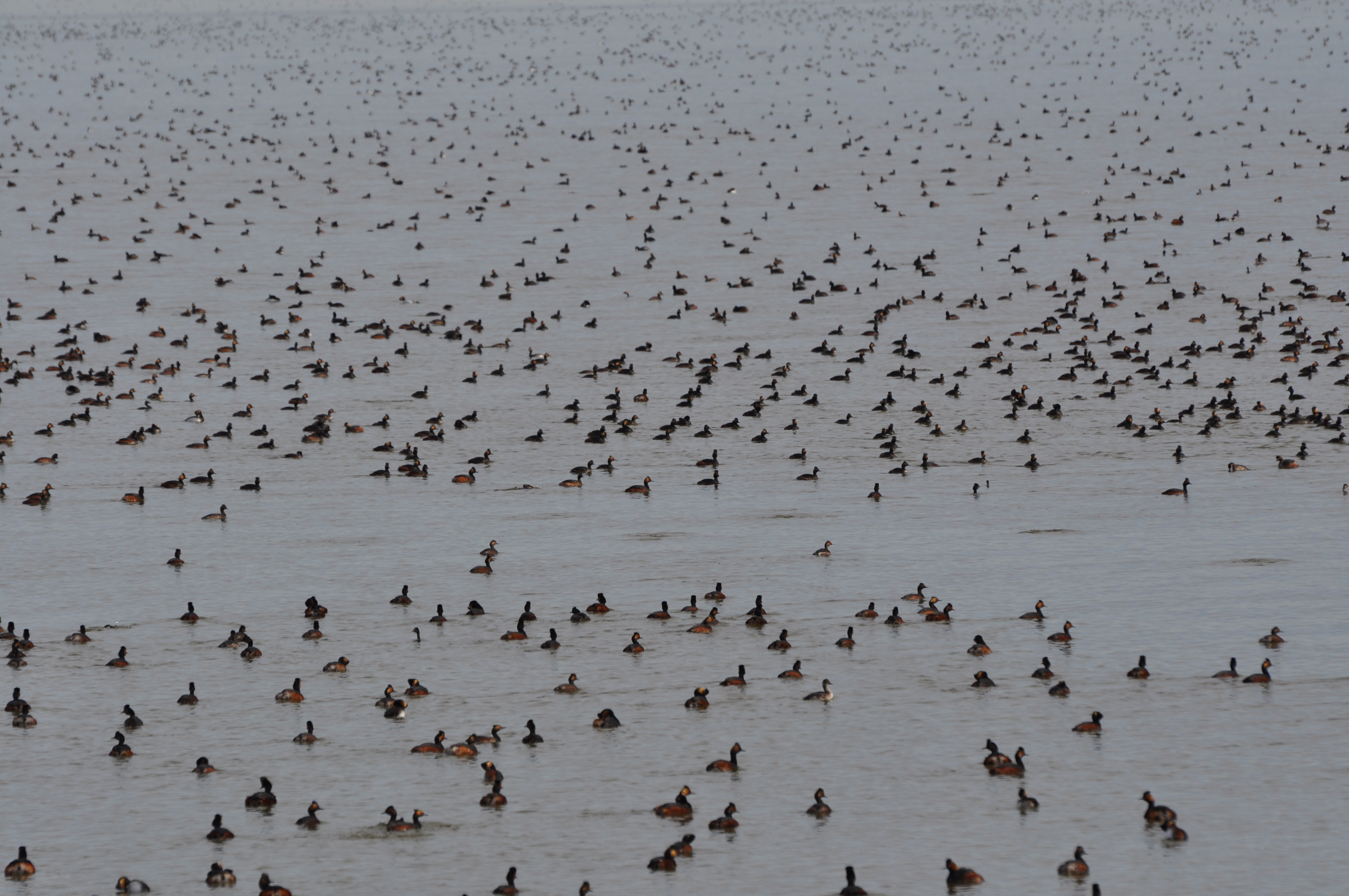 - Hundreds of thousands of Eared Grebes as far as the eye can see.