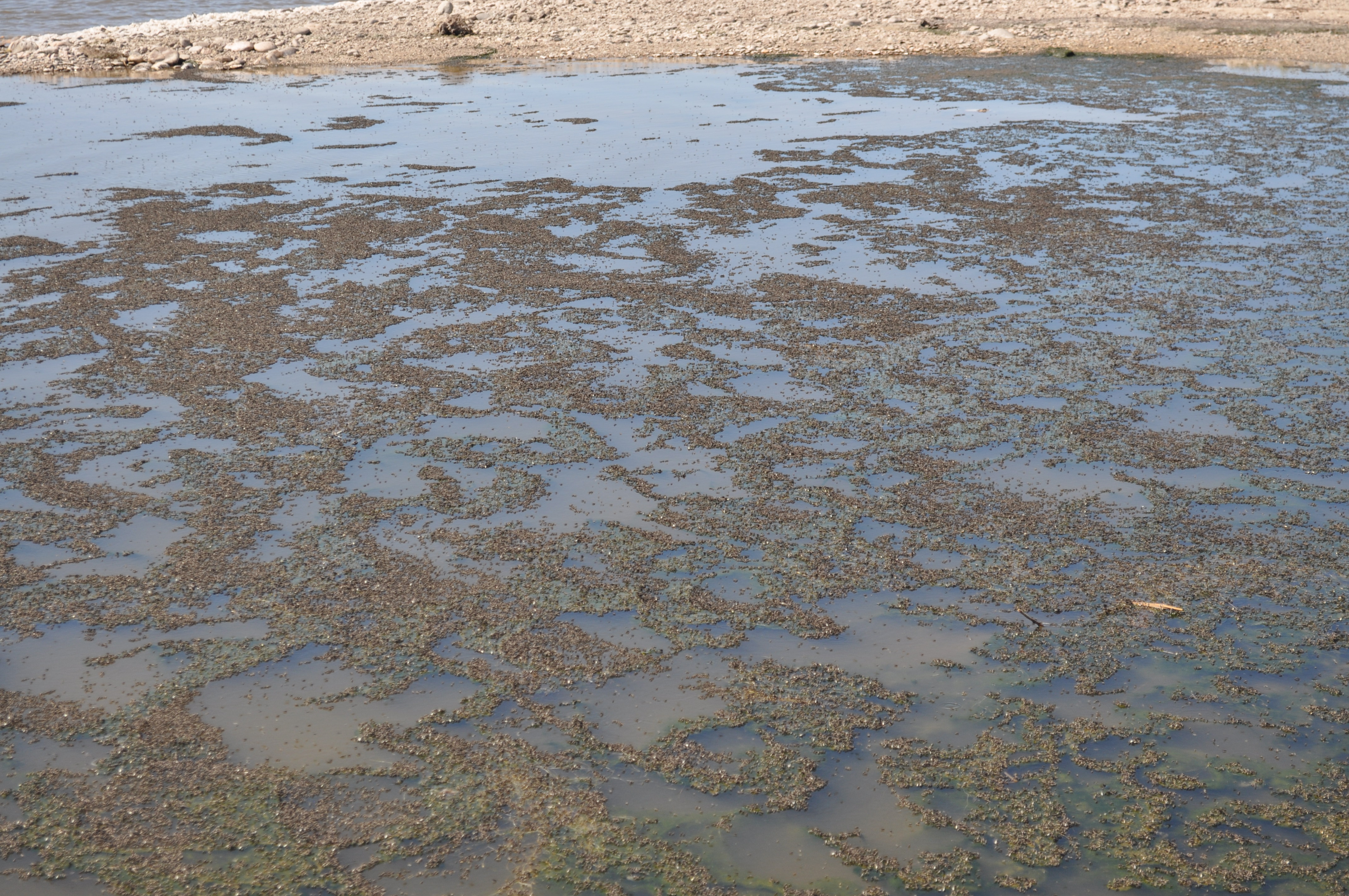 Brine Flies congregate in huge mats feasting on the algae. (click to enlarge)