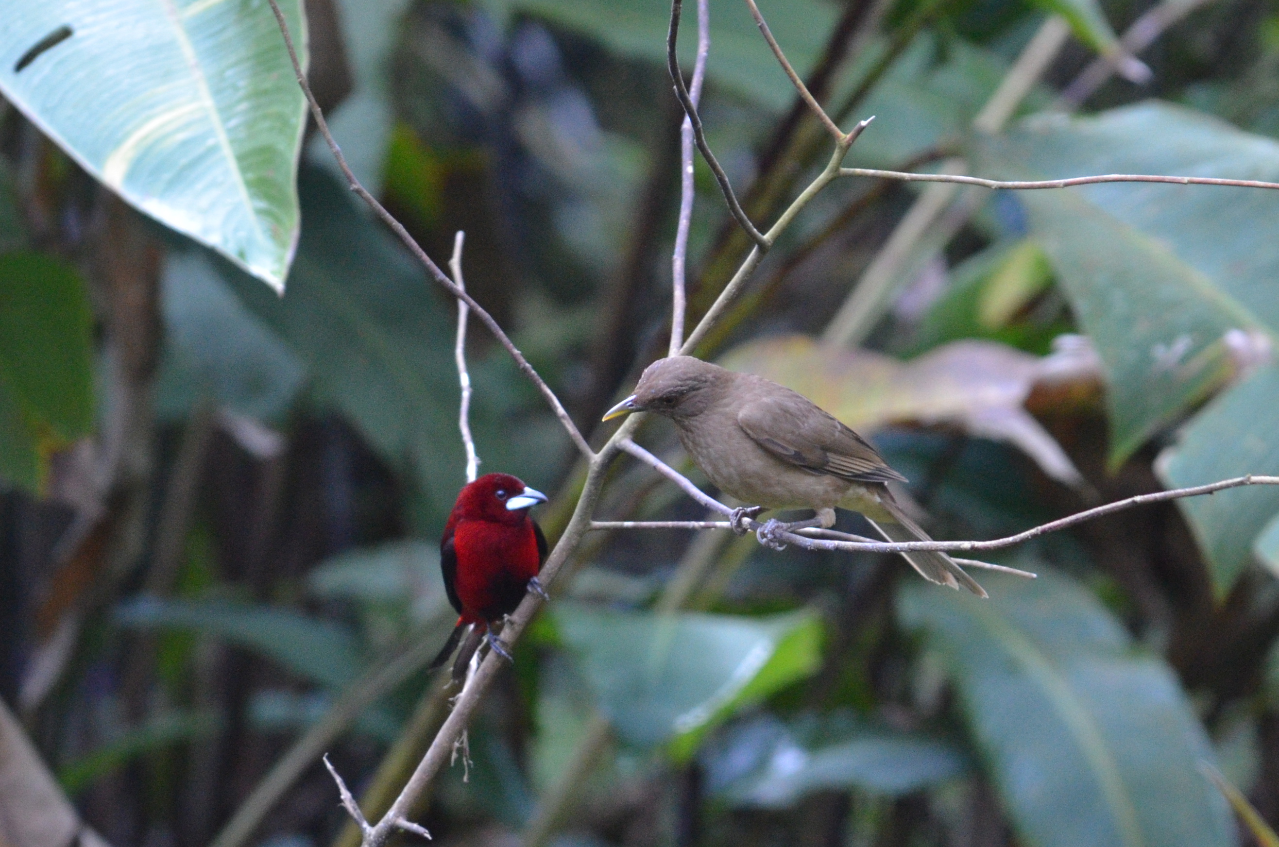 Crimson-backed Tanager and Clay-colored Thrush
