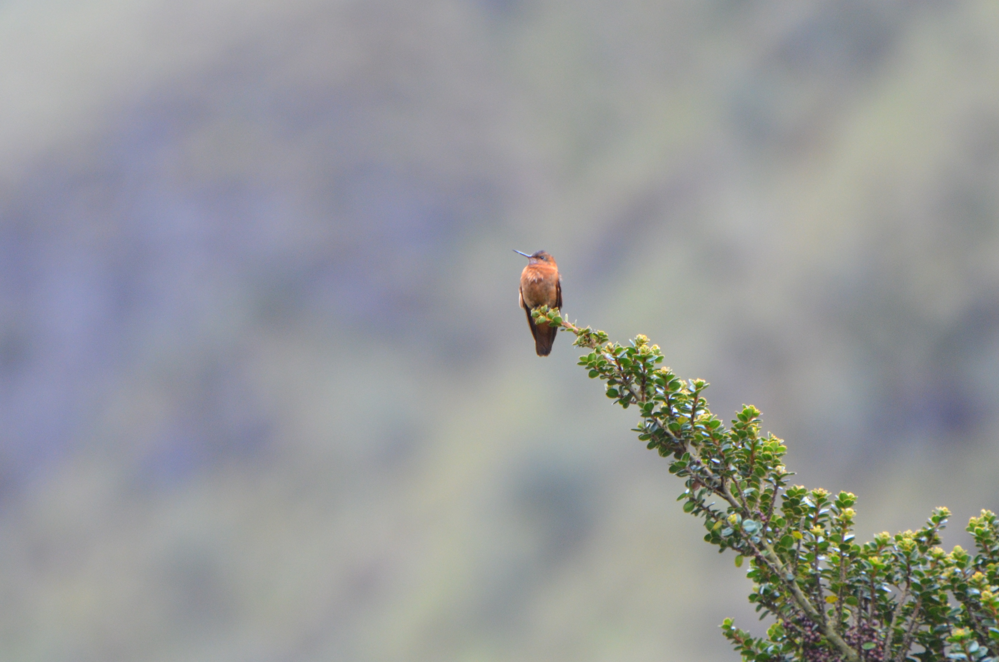 We later found a place to pull off the road and walked along a gravel road until the road turned into a path. Here the birding was easy and the hummingbirds cooperative. We didn’t see the Large Hummingbird—the largest of all hummingbirds, which this area is known for—but we did see the endemic, Violet Throated Metaltail and the Shining Sunbeam.