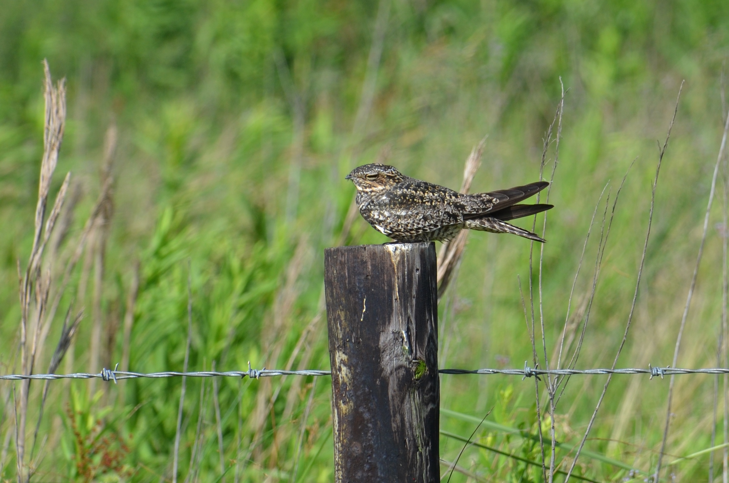 Very entertaining! Beautiful photos of the Dickcissel, and I always thought Boat-tailed Grackles were terribly elegant, too. Your description of them in parking lots brings back memories of them around a swimming pool in Georgia – perfect. I have only seen NIghthawks in flight – I used to love hearing the first ones arrive, those wonderful “peeents” and soaring dagger-like shapes over the city buildings in the evening…very interesting to see your seated bird photos!