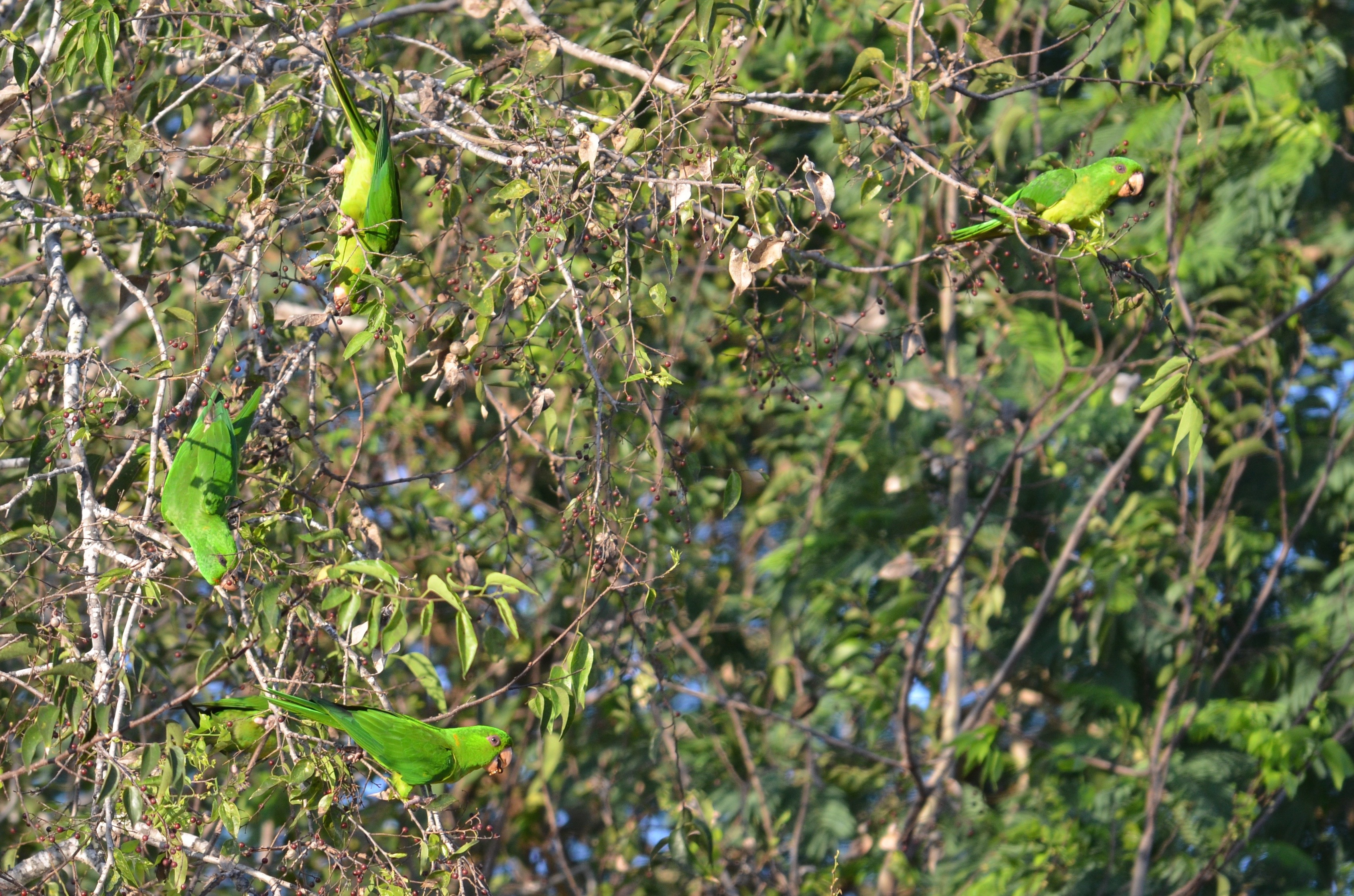 The parakeets, that is. We’re driving around in white vans looking for Green Parakeets.