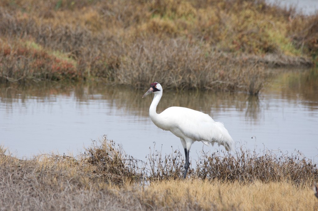There are several areas in the U.S. where Whooping Cranes winter and where they’re protected, since they are endangered. Through population reintroduction programs there are two other wintering sites in the US–one in Louisiana and another in Florida. Having more than one area helps to assure that the populations don’t get completely wiped out if there was some sort of disaster (weather incident, petroleum spill or otherwise).