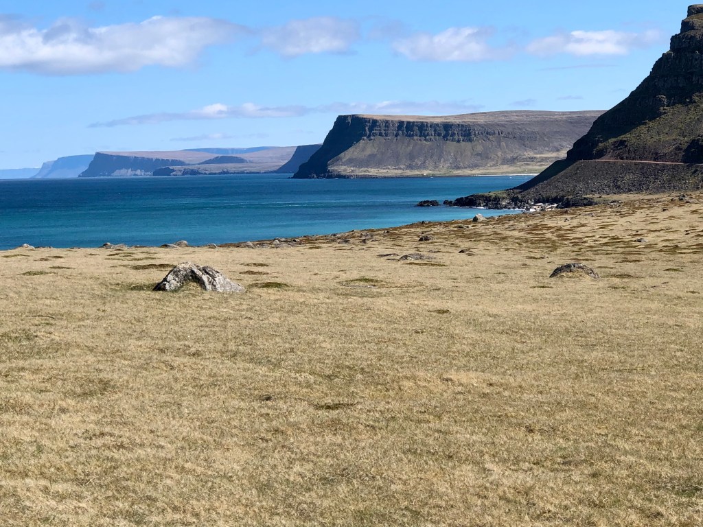 We spent an hour at Latrabjarg Cliffs, snapping photos of the birds, and then back into the van and on the harrowing two-hour drive back to our accommodations at Önundarfjörður. I placed the headphones back on my head and turned up the music and faced the direction of the mountain. We would do another two-hour drive the next day through the fjords when we’d return to Reykjavik where I would again wring my hands and gasp at hairpin turns on the narrow gravel roads.