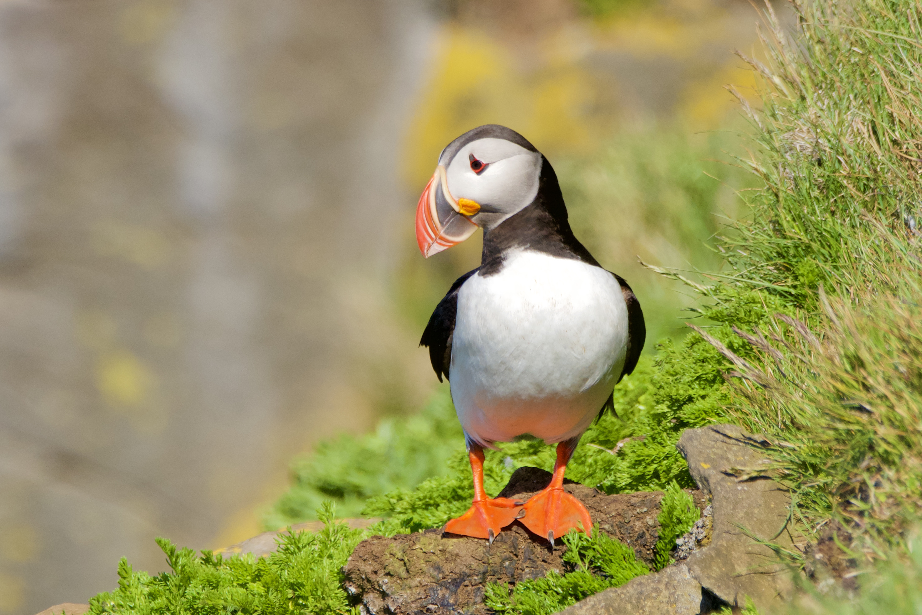 I survived the drive and this time I was eager to climb out of the van. Everything was clear and in technicolor. The bright green grass along the edge of the cliff, and the black, white and orange Atlantic Puffins stood along the cliffs, not at all bothered by our presence. Puffins only produce a single egg each nesting season. We didn’t see any young, but did witness those that returned from their feeding foray out at sea and greeted their partner with their courtship ritual of bill clacking.