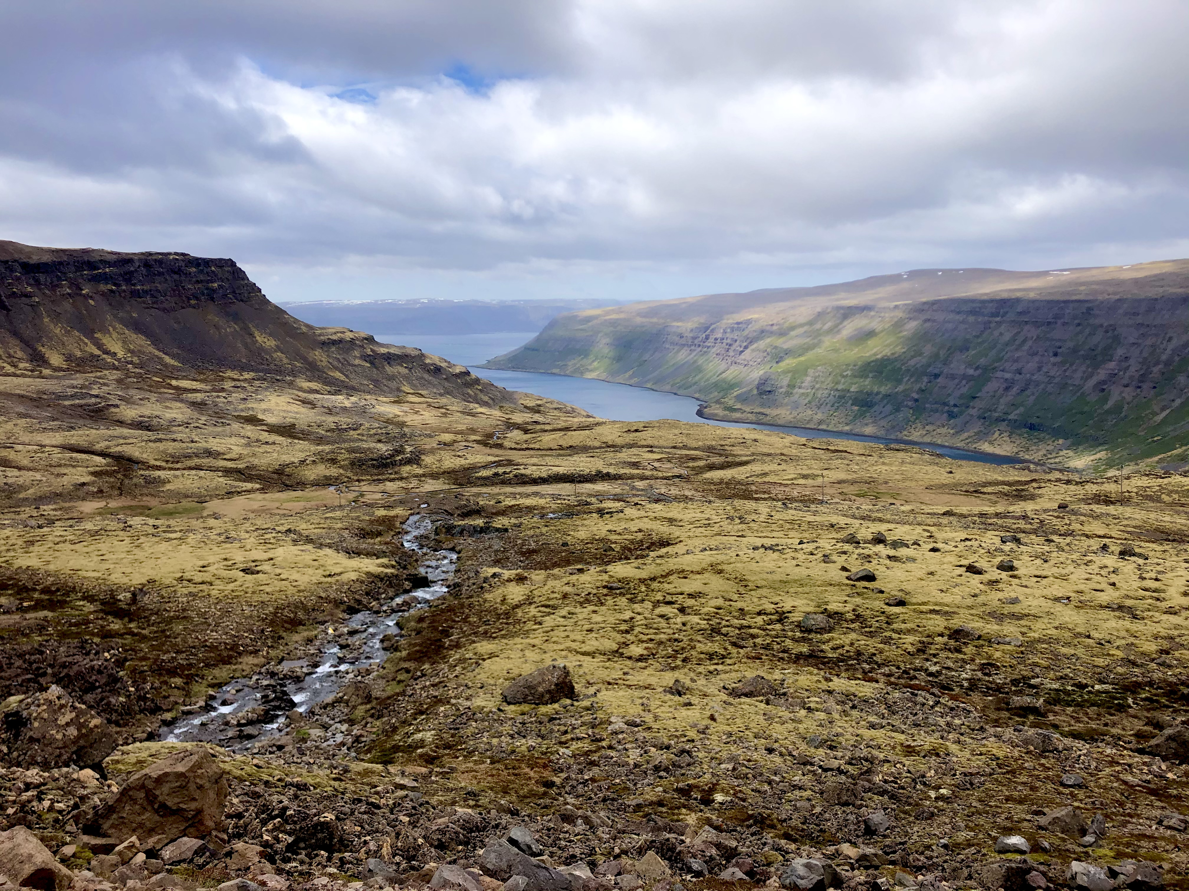 Our first day in Iceland’s Westfjords was cloudy, rainy and a little snowy. It alarmed me a little that our guide said, “I read that there’s a possibility of black ice” just as he started our drive. Like my family’s adventure to the Bingham Copper Mine, our drive into the fjords started easy. We’d go from pavement to gravel then to pavement and the higher up was all gravel. The road was narrow and the wind so strong I thought it would blow us off the mountain. We’d go up and around one mountain then down again only to face another one. There were no guard rails at all on the drive. One slip and you fall to your death.