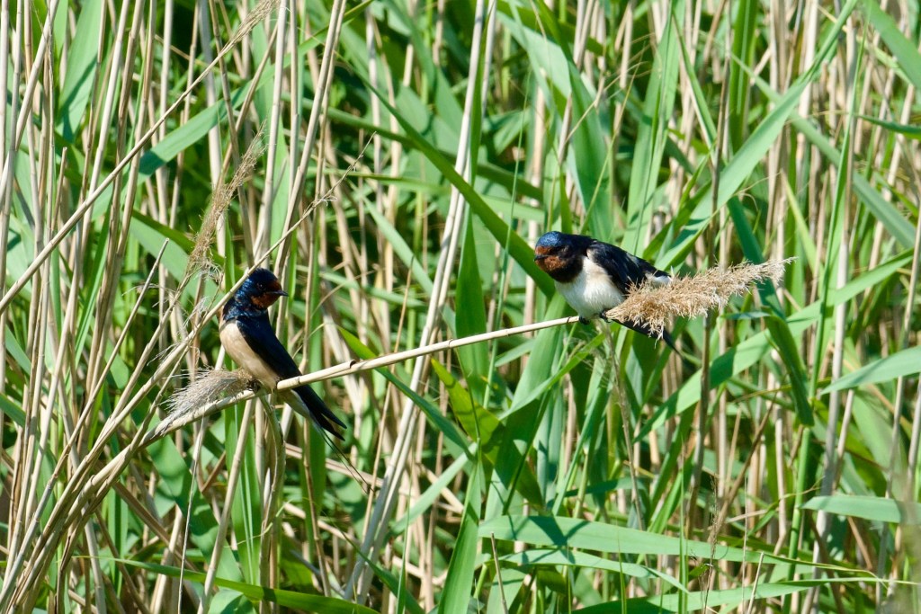 We walked a path through tall reeds that led us to a bird blind. I followed Karline as she led the way, feeling smaller and smaller as the reeds seemed to grow taller around us. She pointed out the Grand Castélou, Bearded Tit and a Yellow Wagtail at the top of a reed. Barn Swallows swirled around us and a few rested atop the reeds to give us stunning views of their iridescent midnight blue plumage.