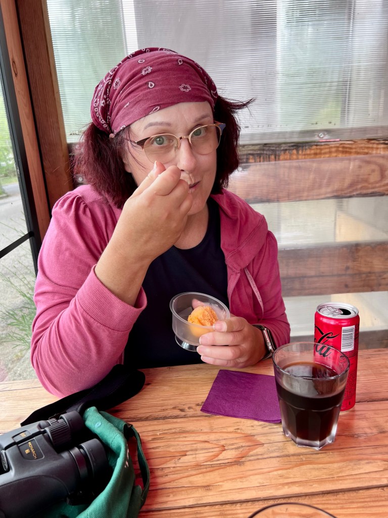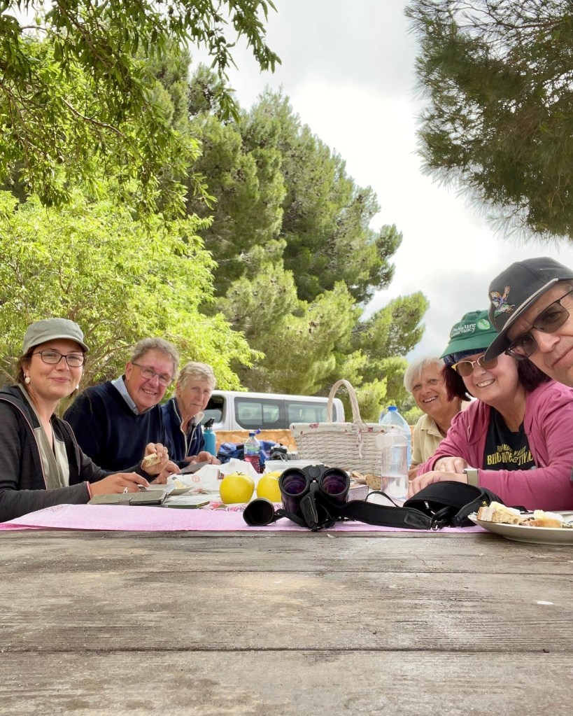We visited the stone fruit orchards of the Roussillon plain where I was excited about the Rollers perched on power lines. Their lovely blue and orange feathers reminded me of colorful tropical birds we’d see in Latin America. We had another great picnic (thank you Dominique!), and just as we were driving off I spotted a Little Owl perched atop a fence post. I yelled, “Stop! Little Owl!” but not quick enough. Philippa pressed the brakes of the van and we stopped suddenly, only for Steve to see the Little Owl fly away. We added more Rollers to our lists along with Hoopoe, Black-winged Stilt, Woodchat Shrike and a super shy Golden Oriole.