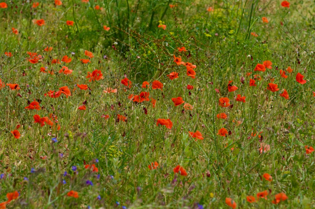 As we drove to our next location we passed fields of scarlet poppies blanketing the landscape. Spring came late with recent rains resulting in lots of poppies everywhere. The green-grayish leaves of the olive trees were silvery and I noticed farmers planted prickly pear cactus as fencing on the perimeter of their vineyards.