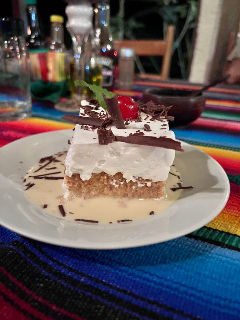 The food was fantastic. The dinner bell rings at mealtime and guests are served family style on the outdoor patio overlooking the feeders. (The staff will ask you when you check in if you have any food allergies.) The steak in the photo below is the best steak I’ve ever had in Costa Rica. And for dessert on our first night they served Tres Leches (also below), which, as a Texan, I completely appreciated.