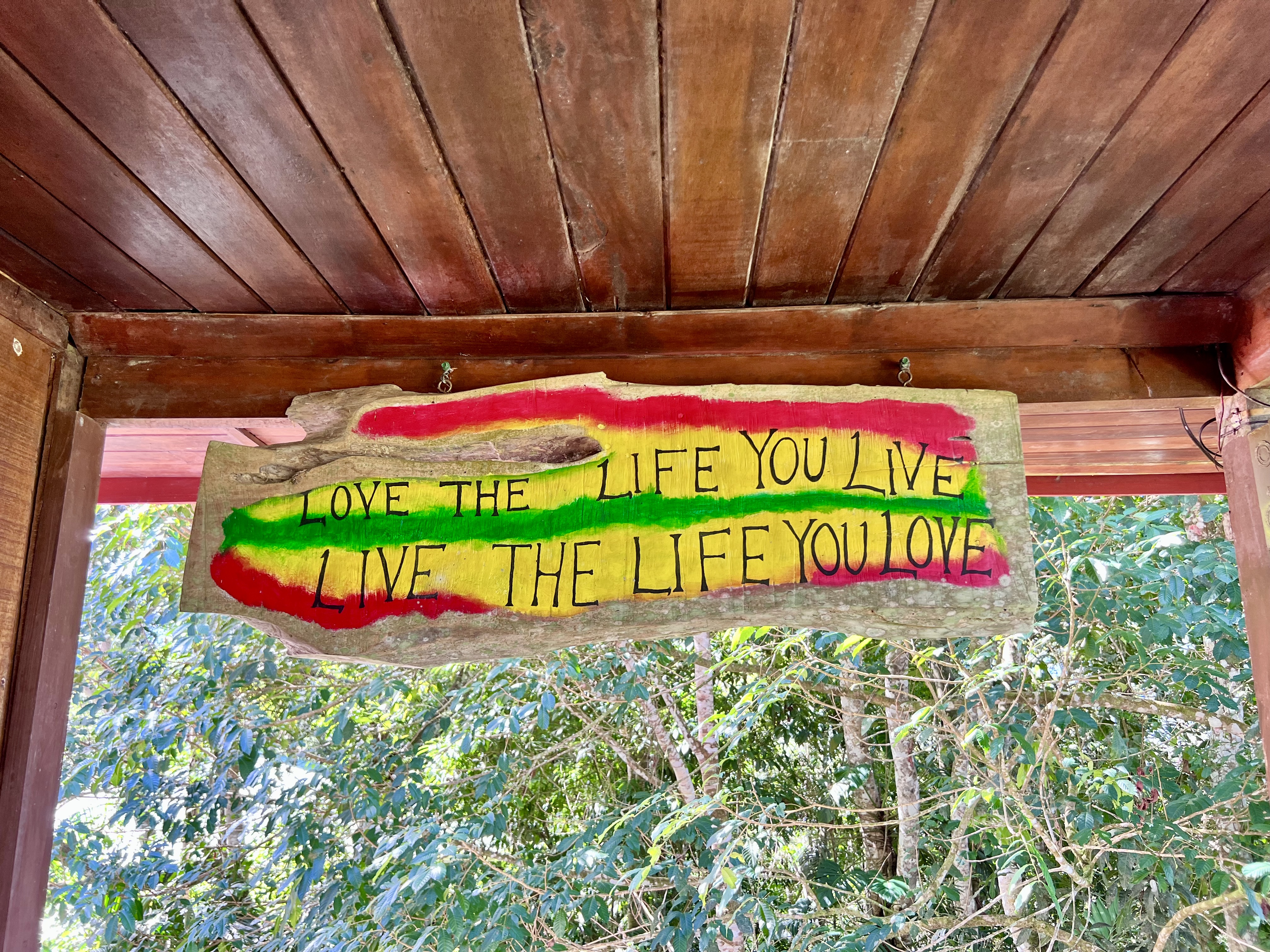 The words you see below in the photo, “Love the life you live. Live the life you love.” was on a sign hanging at Rancho Naturalista. It was the anecdote I needed at this time in my life. I had been hoping that Costa Rica would bring some clarity to my next step in life, having just lost my job. I didn’t know exactly what that was, but what I did know was that I was going forward with a life I loved.