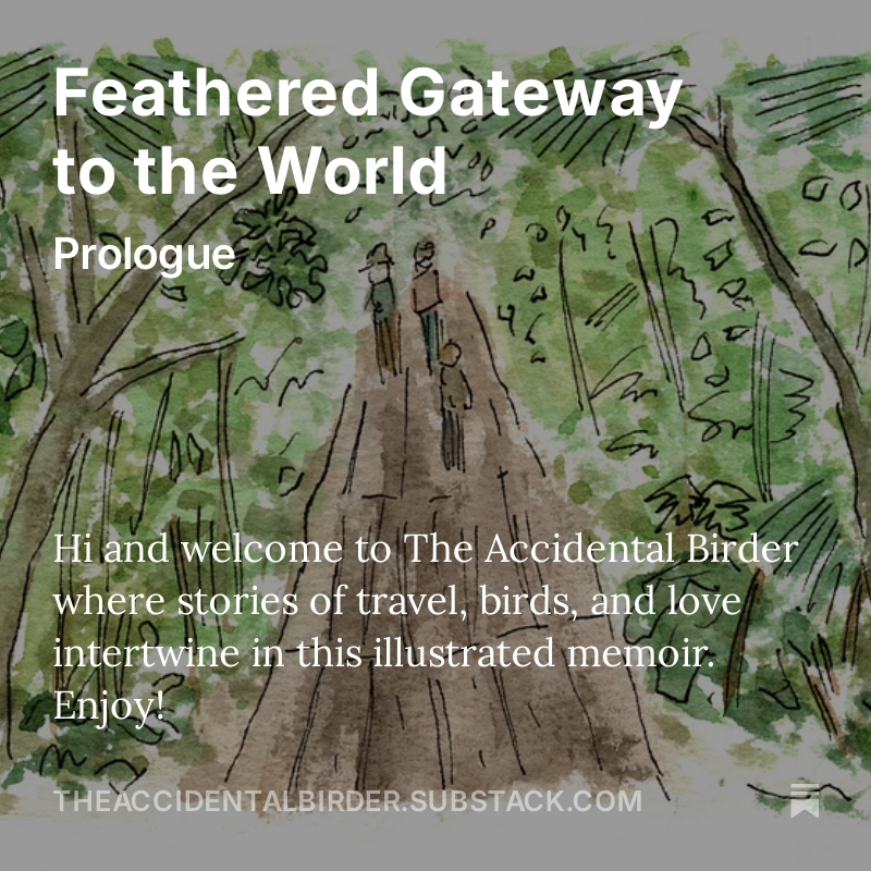 I’m thrilled to announce the launch of my Substack, where I’m unveiling a deeply personal memoir about birding adventures across the globe with my husband. I also illustrate it with my watercolor paintings. These stories weave together the beauty of travel, the wonder of birds, and the enduring power of love. Each essay is crafted to evoke a strong sense of place, immersing you in vibrant landscapes and heartfelt moments.